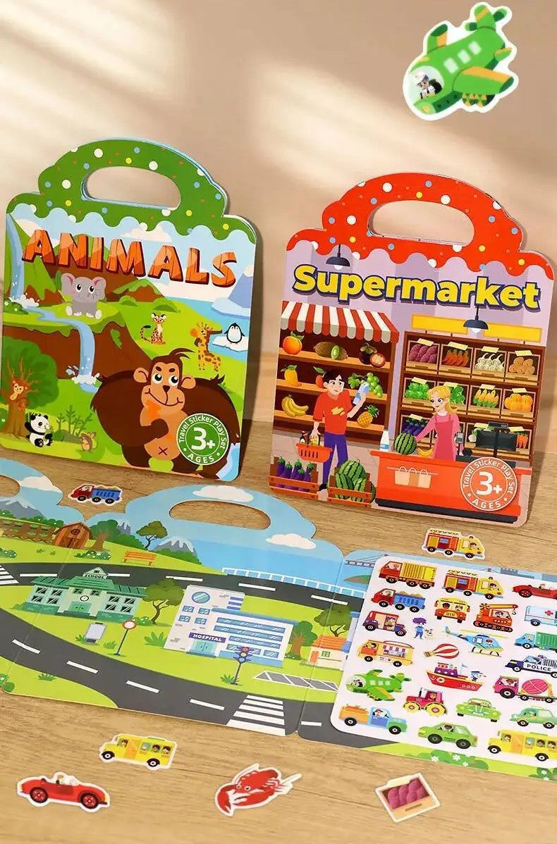 🎨 Šios interaktyvios knygelės su lipdukais lavina vaikų kūrybiškumą, moko pažinti formas, spalvas bei įvairius objektus.